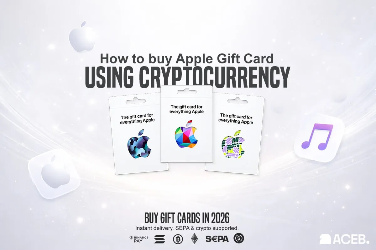 Buy Apple Gift Cards with Bitcoin, Ethereum, Solana, or USDC on ACEB.com. Step-by-step guide covering region selection, payment, instant delivery, and how to redeem your code on Apple.