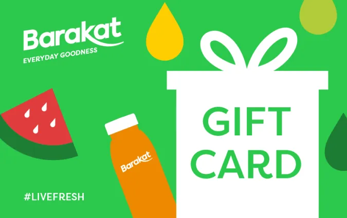 Barakat é uma loja online. Todos os códigos de voucher são aplicáveis apenas para uso único em conta de usuário único. Os vouchers podem ser resgatados apenas no aplicativo Barakat ou no site https://www.barakatfresh.ae/. O voucher não pode ser resgatado por dinheiro ou por compras off-line de produtos Barakat. Cada código de voucher pode ser aplicado apenas uma vez por pedido no aplicativo ou site Barakat Vários códigos de voucher não são permitidos para uma única compra. A oferta não pode ser aproveitada em conjunto com outras ofertas ou promoções do site. Aplicam-se os termos e condições do site. Como usar seu cartão eGift: Baixe o aplicativo Barakat na App Store ou Play Store. Faça login ou registre-se. Adicione ao carrinho os produtos desejados. Finalize a compra e insira o código do cupom. Receba o melhor do Fresh na sua porta. Os cartões eGift, uma vez emitidos, não podem ser cancelados, trocados, prorrogados ou reembolsados e estão sujeitos aos termos e condições do comerciante. Os itens adquiridos com este cartão eGift são reembolsáveis de acordo com a política de reembolso e troca do comerciante. O comerciante é o único responsável pelo produto e serviço fornecido aos clientes através do uso deste Cartão eGift.